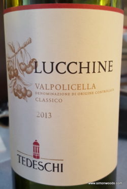 Tedeschi Lucchine Valpolicella 2013, Veneto, Italy (£11.99 Italian Continental Stores, R Campbell & Sons, BJR Hanby, Polygon Wines, The Square Wine Company, Grape Sense)