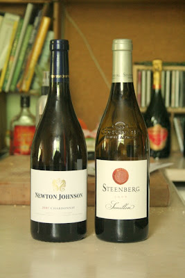 Never mind, it’s a sunny day inside, thanks to two splendid Cape whites. I seem to be having a Chardonnay sort of week, with Cumulus on Tuesday (look it up on twitter), a great Rully yesterday, and today, the Newton Johnson 2007 Chardonnay from Overberg (£10.79 Bibendum, Fresh & Wild (Wholefoods), SA Wines Online). It’s a bit of a boisterous pup at the mo, but under the creamy, nutty exuberance and bouncy fruit lie a minerally streak and a backbone of zesty acidity. I’m shoving the cork back in (it was a total git to remove) and plonking it in the fridge not for tonight but for tomorrow – I expect it to provide even more pleasure.