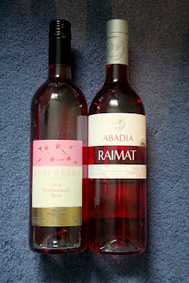 It’s an odd day here. Been inside most of the time but had to pop out around lunchtime on an errand. It’s quite bright and everywhere is so incredibly green at the moment. It would have been a perfect day to sit outside tasting a couple of 2008 rosé wines that have recently arrived, but for the fact that its drizzling and a bit cold. So I’m indoors sipping the Raimat Abadia Cab Sauv/Tempranillo, Costers del Segre (£6.99) from Spain and the Explorers Vineyard Marlborough Rosé (£6.49 The Co-op) from New Zealand with the central heating on.